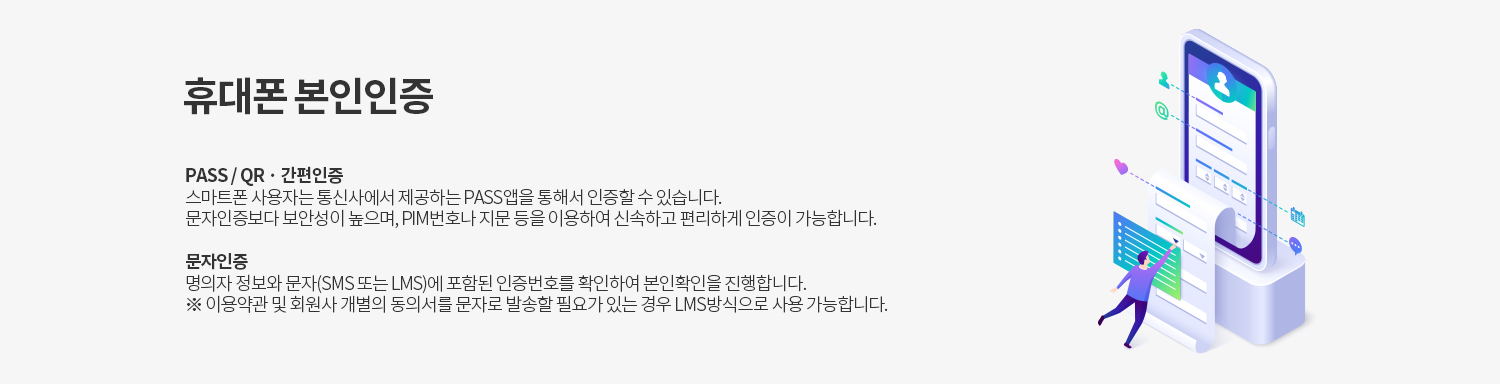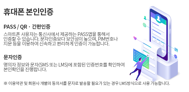 법인폰 사용자는 법인폰 개인인증 서비스 신청 후 휴대폰 인증을 하실 수 있습니다.